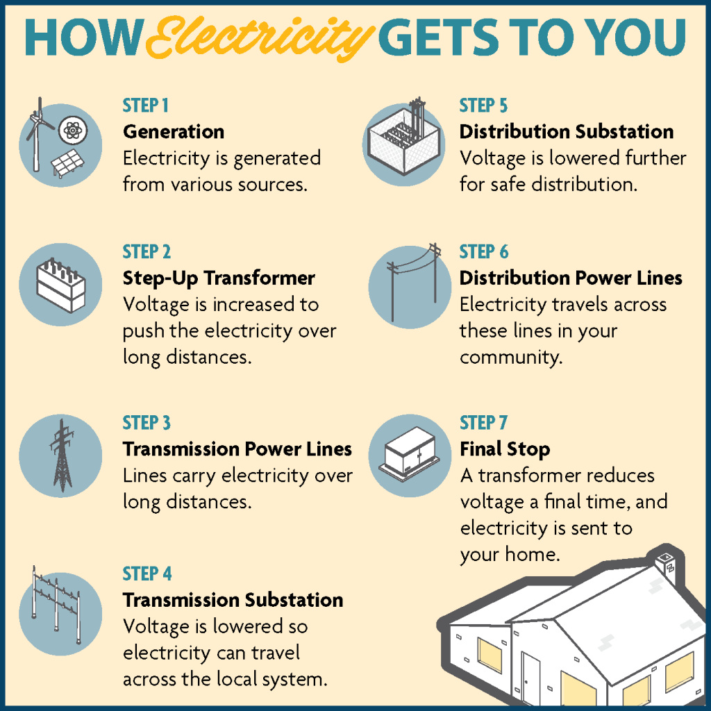 After traveling through transformers, electricity reaches you — to power everyday life.